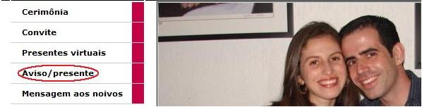 3. Clique na página "Aviso/presente", que aparece no Menu (do lado esquerdo do site)